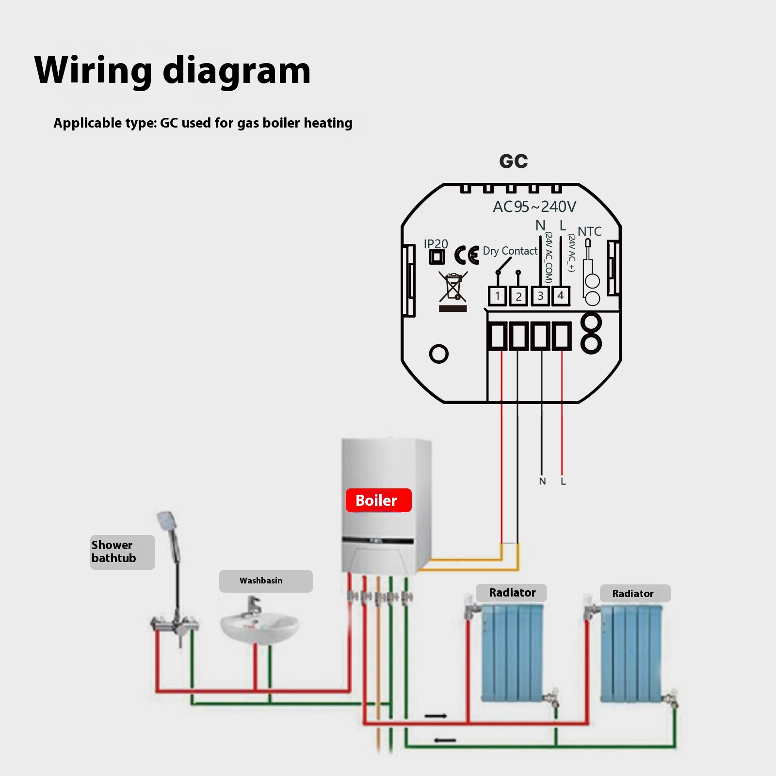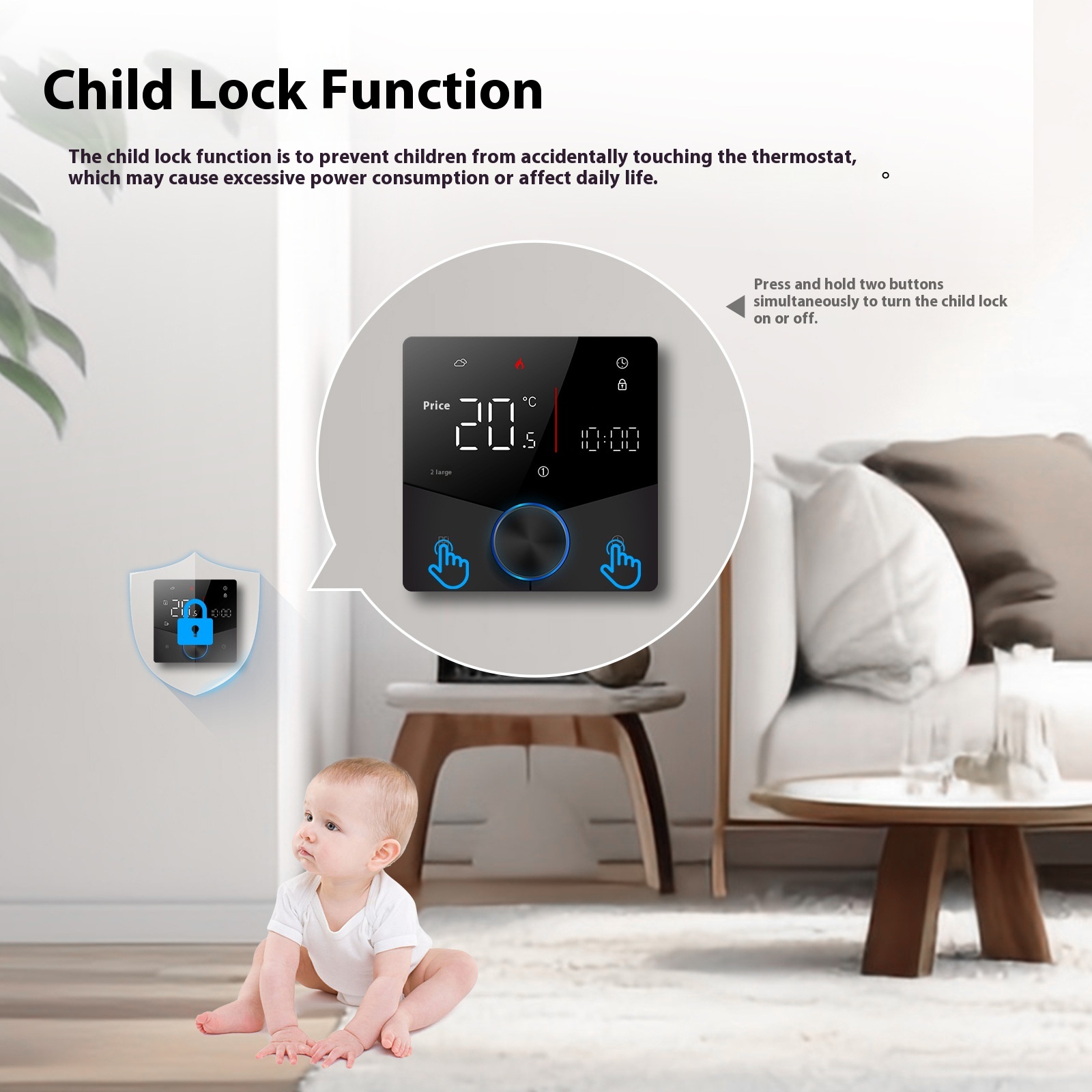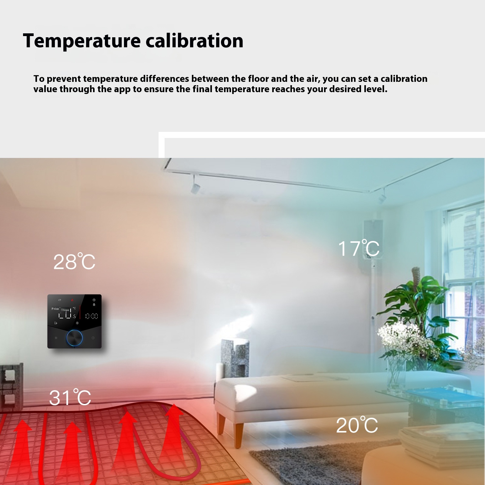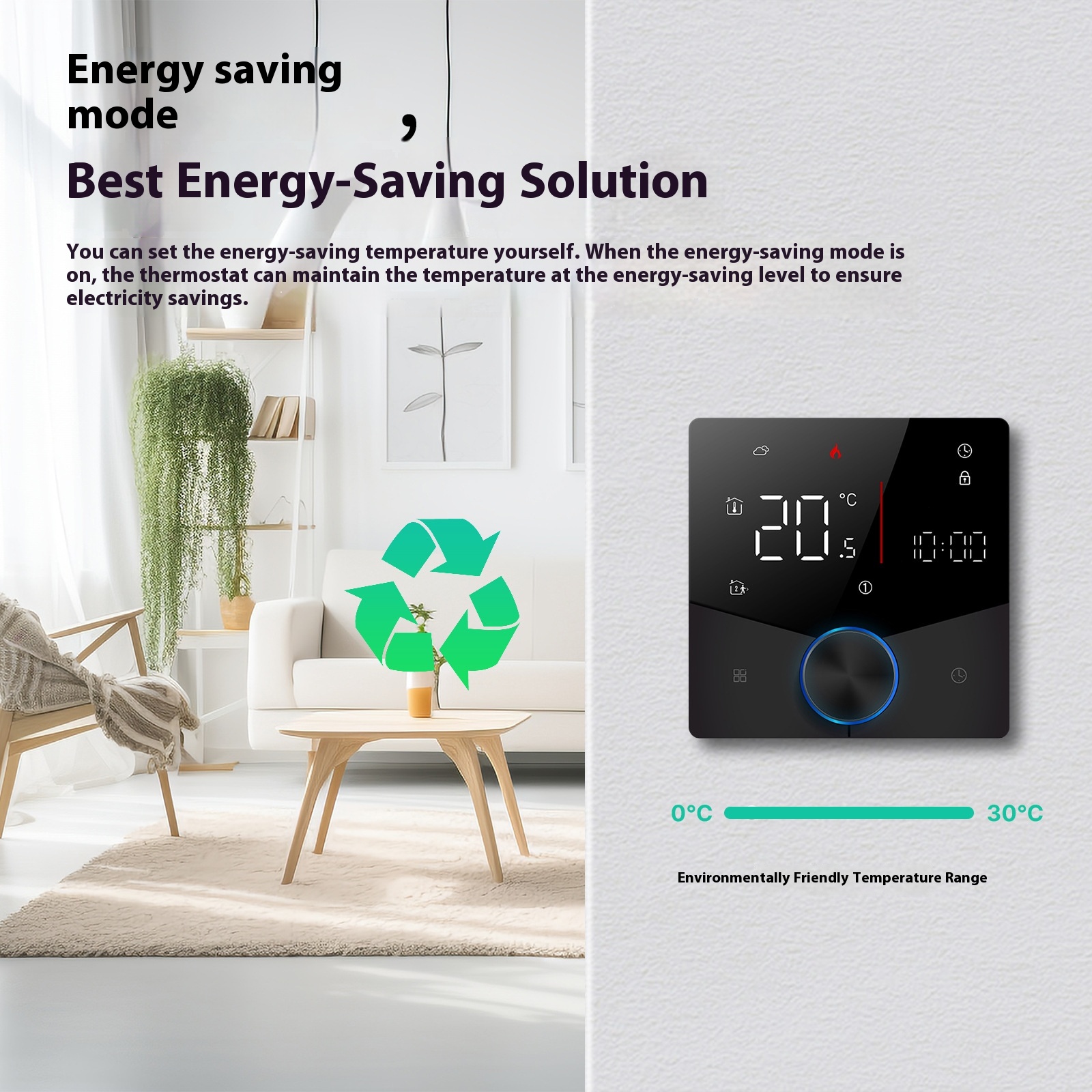 This temperature controller is made with flame-retardant ABS housing, offering strong resistance to heat and ensuring safe operation at all times. It has an IP20 protection grade, making it suitable for indoor installation in living rooms, bedrooms, and hall areas.