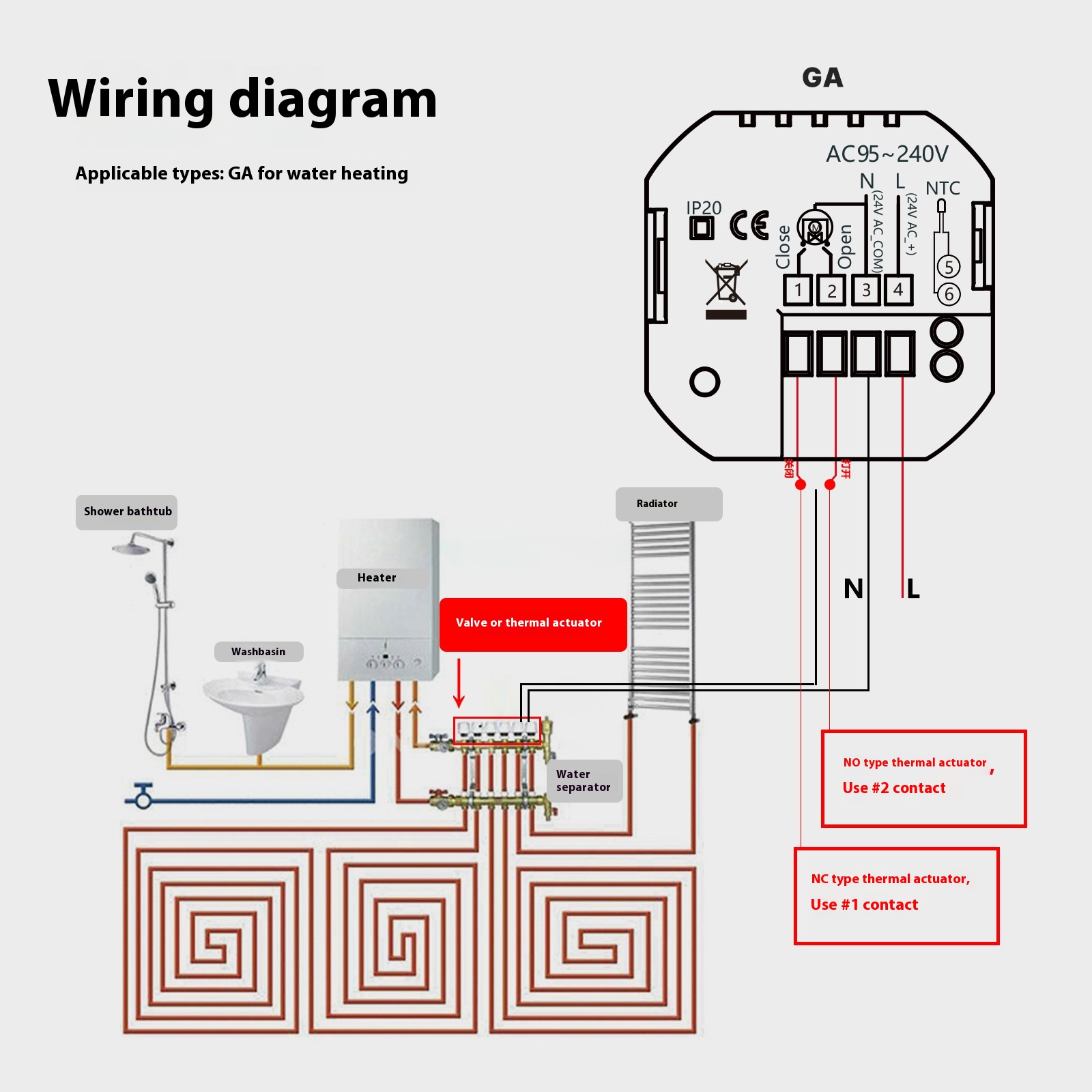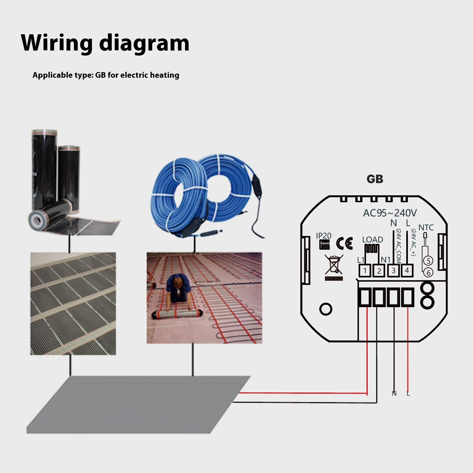 The controller is designed for floor heating thermostats and fits into a wide range of residential heating systems. With its zero-fire connection mode and simple wiring structure, installation is straightforward for professionals or qualified DIY users.