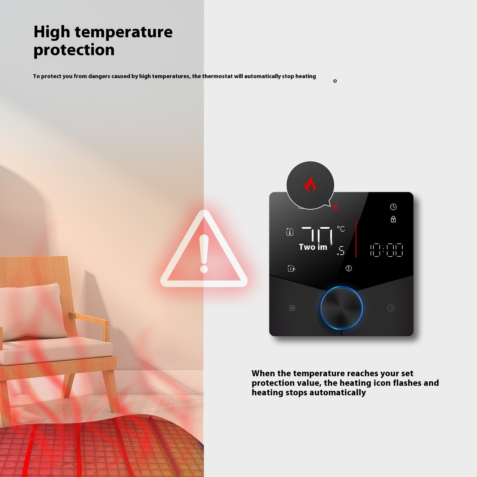 The controller also includes over-temperature protection that automatically cuts off excess heat to protect your home, floor materials, and energy system.
